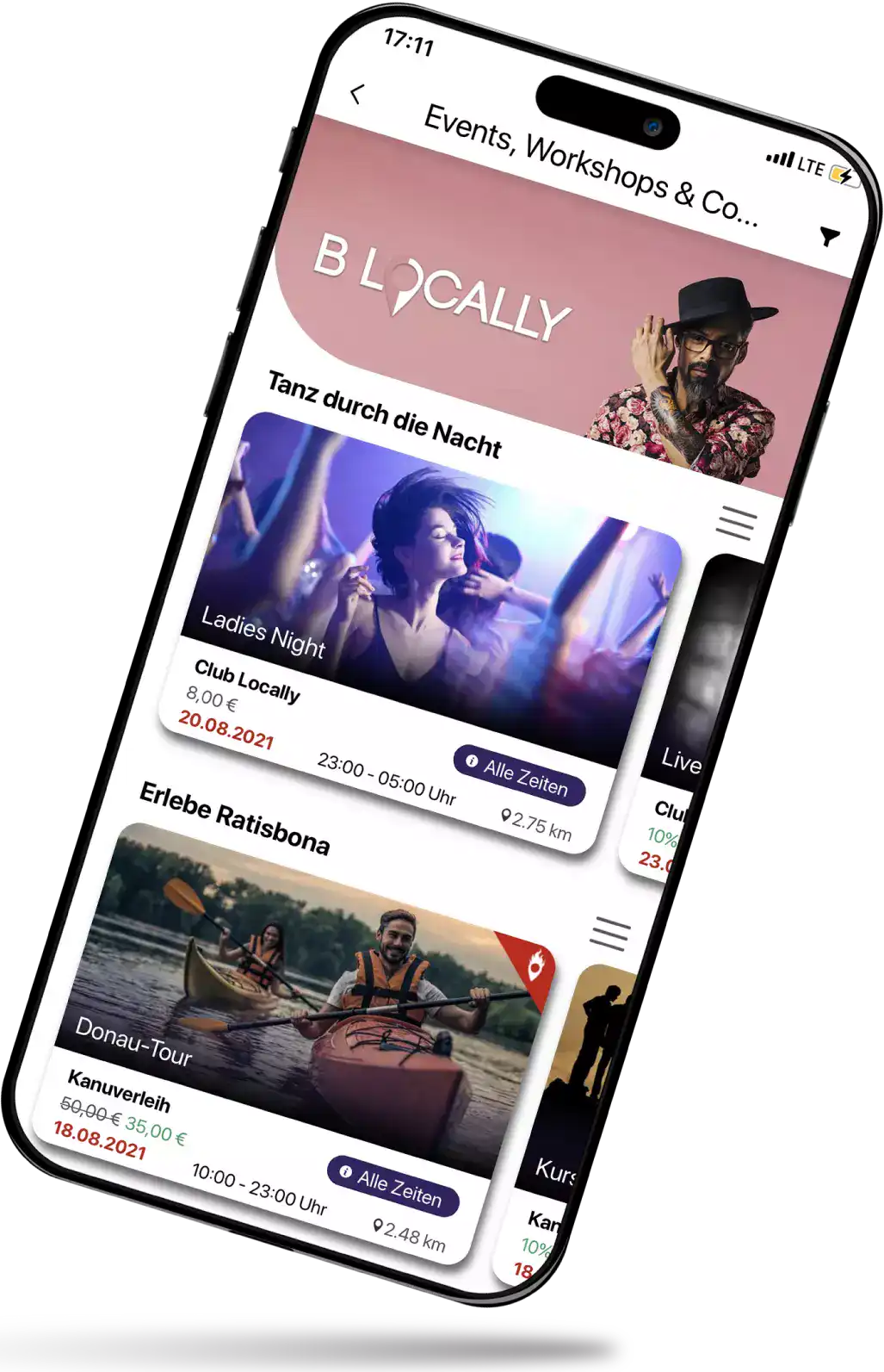 Promotions und Events nach Zeit und Entfernung.